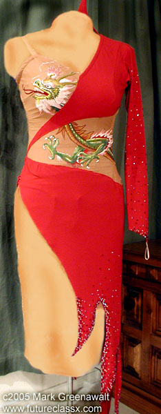 to paint an Oriental Dragon on a custom-made dress for a ballroom dancing
