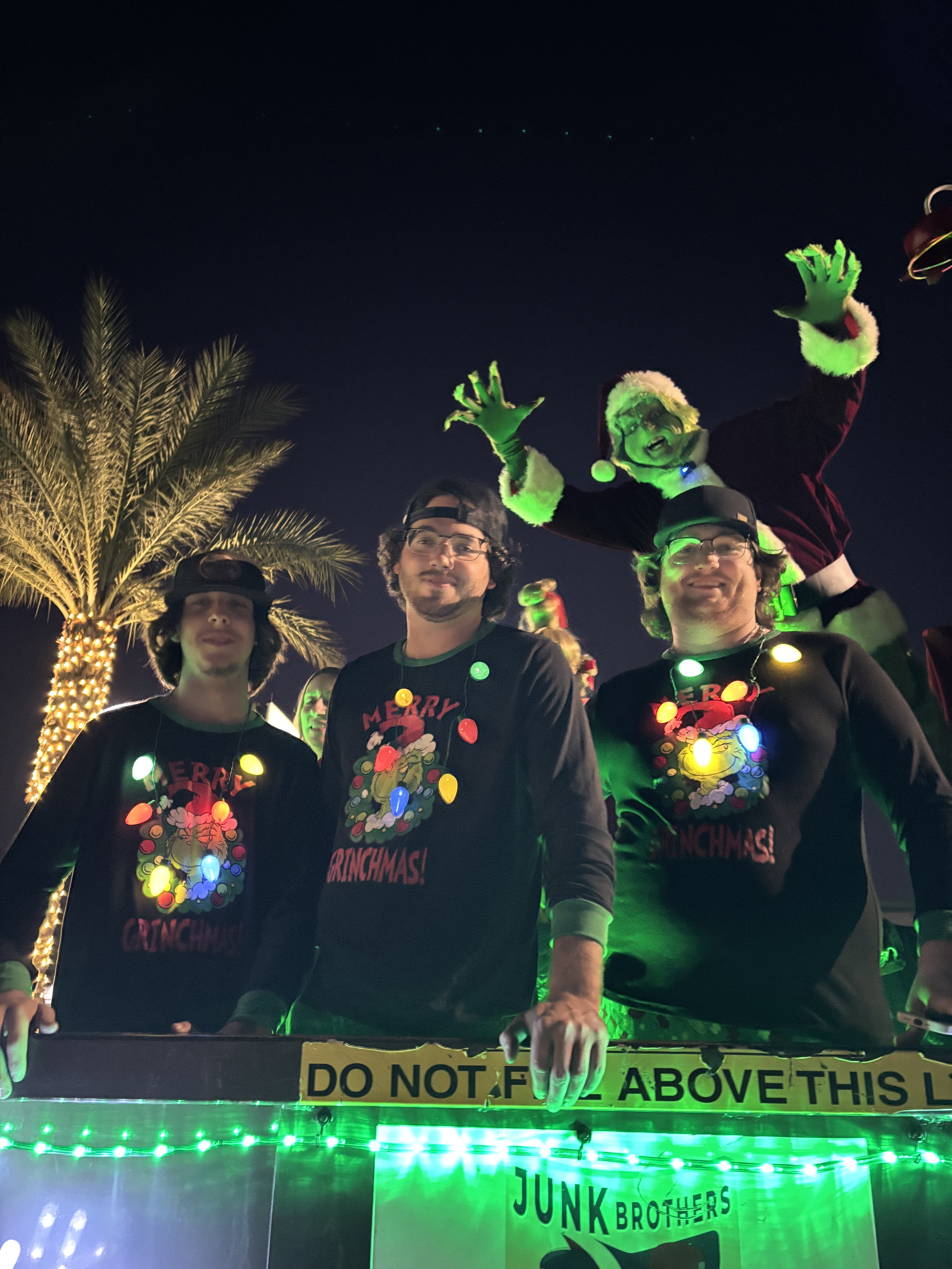 Then I spent a part of the afternoon in my makeup chair to once again apply the Grinch prosthetic makeup to myself for the Chandler Parade of Lights. This was the third year I've had the opportunity to ride the float for Junk Brothers. The float is literally made out of a dumpster, which is so apropros, but it is decked out with a flurry of lights (mostly green) that we've actually placed twice so far as the best lights in the parade. After the parade I went home to remove the makeup, which takes a little effort, and then headed out to celebrate Ed Clapper's birthday. What a day!