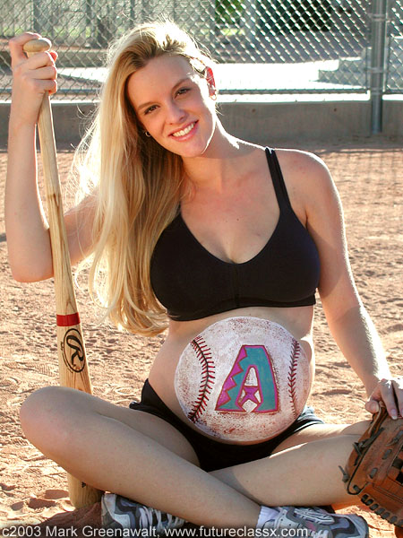 The pictures that they have included as "Ideas to inspire you!" are of Sarah Bowers with an Arizona Diamondbacks baseball belly and Carrie Sasser with the Winnie the Pooh belly. Click on these images below to see the page from the kit and the individual belly painting images.