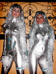 wore tinsel wigs and twirled white and silver feather boas as they strutted