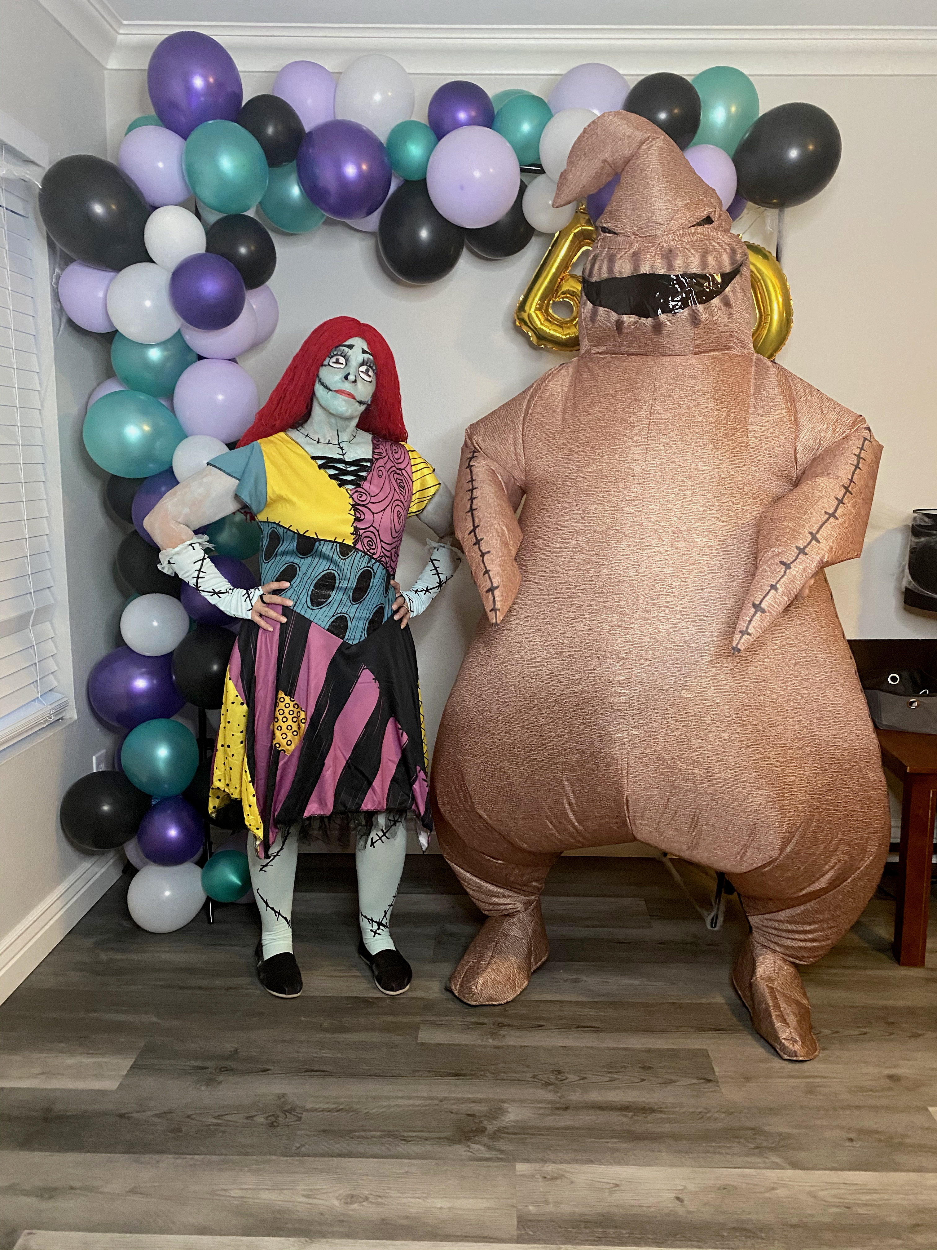 Halloween in the middle of a pandemic is an interesting dilema. We have gone to parties in the past couple of years at a friends house, but social distancing put the kibosh on that event. Another friend was having a party, but we ended up bowing out of that too for several different reasons, but I'm sure it would have been a blast. Luckily we at least got to spend an evening at my son Sage's house so that we could dress up and do some fun stuff with the grand kids and family. My daughter-in-law Savannah set up a photobooth and shot this image of Lori and I in our Nightmare Before Christmas outfits. I did her makeup for the Sally character and then I climbed into the blow-up Oogie Bogie costume. Obviously a fun time was had by all!