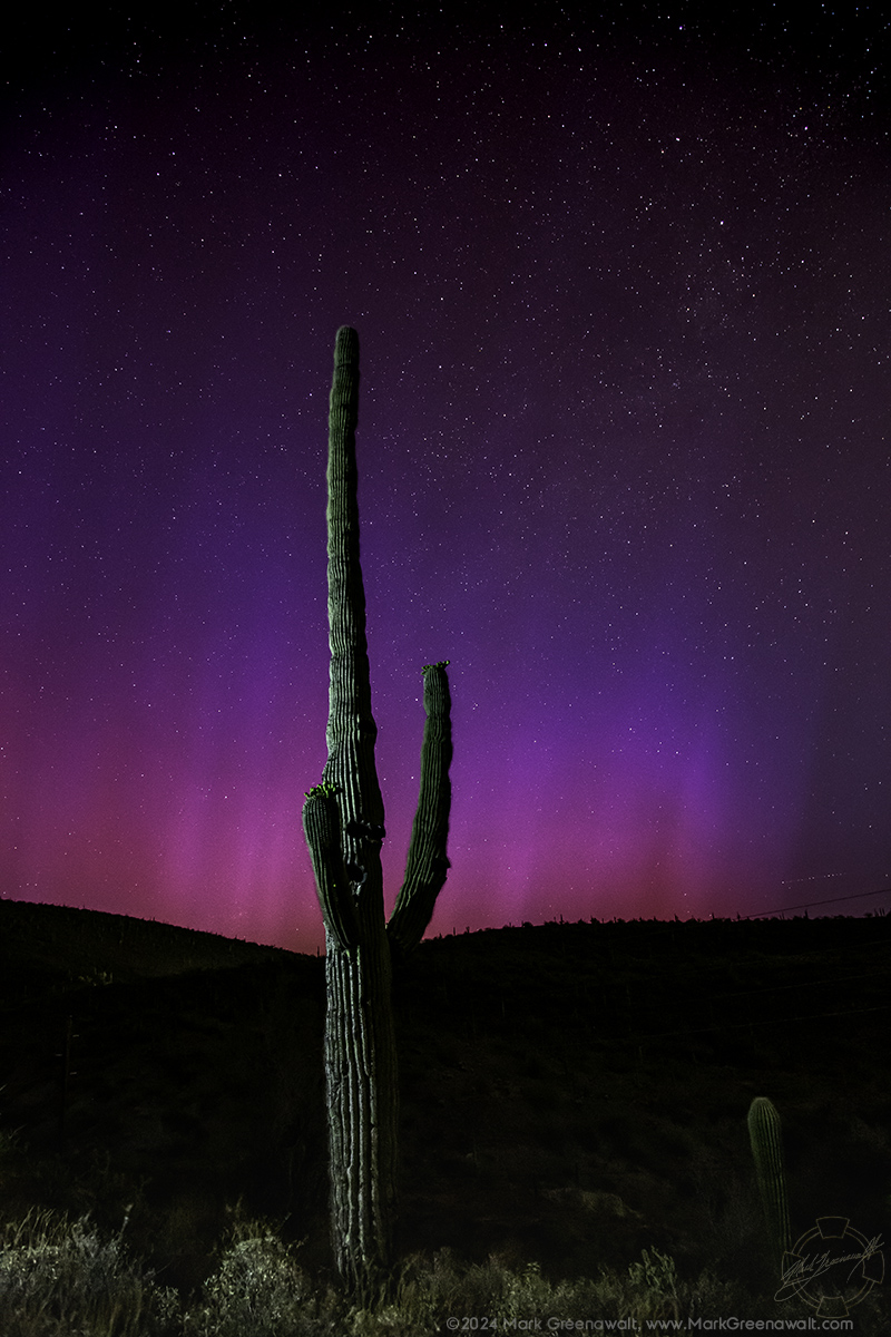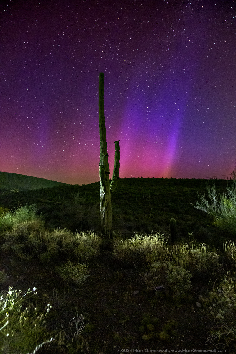 In truth, my aging eyes could barely see anything. I definitely didn't see any colors in the sky, but I could perceive a white sky glow that looked like a city over the horizon. I guess I finally understand the difference between the black and white "scotopic" vision in low light and the colorful "photopic" vision when there is plenty of light! Luckily though, the camera picked up the chromatic light show just fine. I got a few nice shots over the water, but my best shots featured cacti that were illuminated by the headlights of the passing cars. It was such a rush to look at the screen of my camera and see the awesome colors, but it was just a bit sad to not see it as vibrant with my bare eyes. This has been a bucket list item for me and it was prominently featured on my vision board. I thought I would have to brave the freezing cold of Alaska or Iceland to see them. Who knew they come to Arizona to visit. I'm so glad they did!