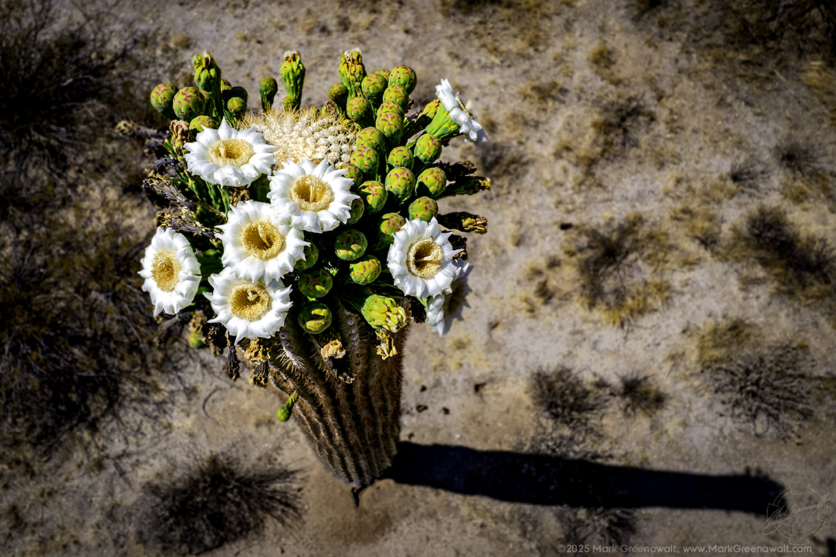 The best way to get comfortable with flying a drone is to get more flight hours under your belt. This month I took the drone to three different locations to work on my skills and to capture some timely images and video. First up was the blooming flowers on the tall cactus that are normally challenging to photograph close up. With a drone I was able to fly above them and get in close. It was a little more difficult than I anticipated due to the wind and the collision detection of the drone that kept me from getting too close. However, I was still thrilled with the results as seen in the image above.