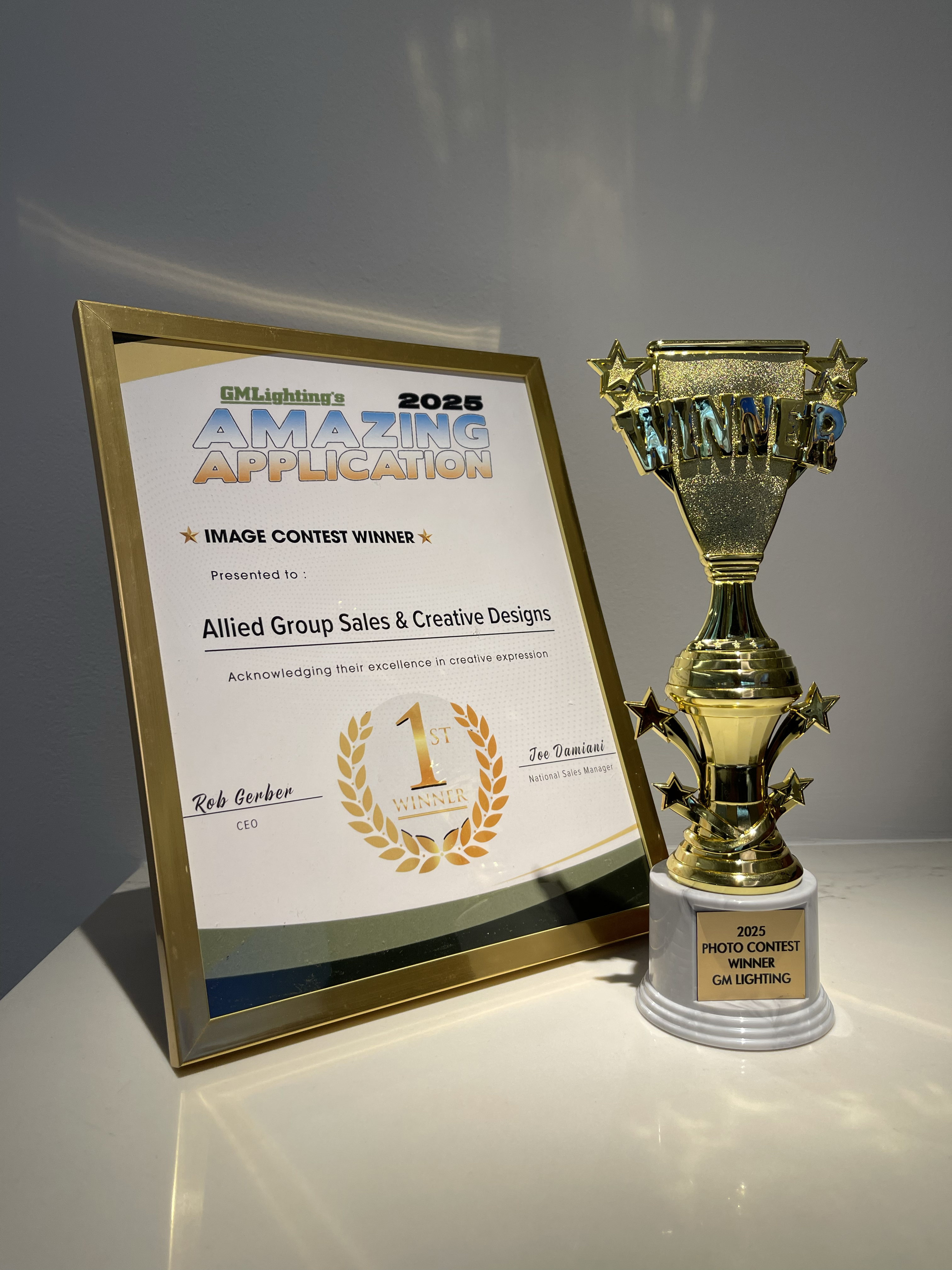 Next was the 1st Place Award in GM Lighting's 2025 Amazing Appplication Photo Contest. This award was for the architectural photos I took of the recent renovation at The Arizona Center in downtown Phoenix. I had specified GM Lighting's LED tape light product on the laser cut steel panels at the Arizona Center and it really did bring a fun splash of color to the project. You can see some of the photos on GM's site at https://www.gmlighting.net/imagegallery/1st-place-winner-cascadia-sales-kelly-hanson-2-3-2-2/