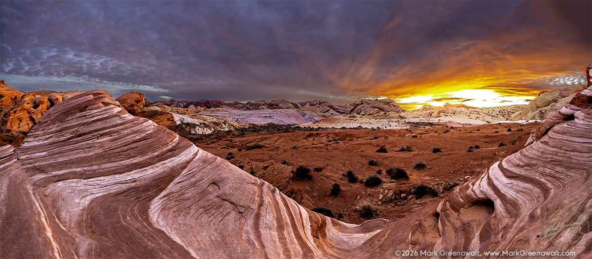 I arrived at The Valley of Fire just in time do a short hike at Elephant Rock and get to the Fire Wave by sunset. The layered bands of color in the Aztec sandstone make Fire Wave such an iconic rock formation in the Mojave Desert. There were dozens of cars at the 7 Wonders trailhead when I arrived, but as I hiked the short 1.5 mile trail there were less and less people. By the time I reach this destination, I was alone and had it all to myself. I have been to the Valley of Fire three times now and each time it gets better.
