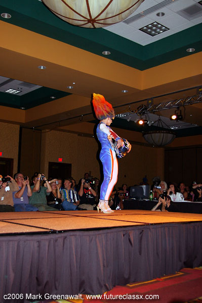 was painting her wig, a male model had walked into the convention hall