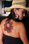 Dos Equis beer was the primary sponsor and nearly all of the paintings were airbrushed from stencils with their tribal tattoo logo design. This time I painted three drummers and about 10 dancer armbands. After that I opened up shop to paint anyone in the audience who wanted to be painted. Here are a couple of pictures from the event: |