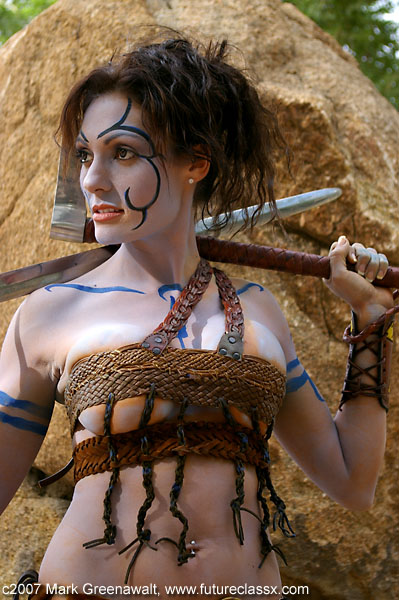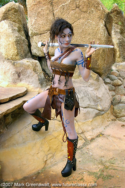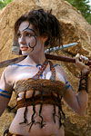 DAY 2I had worked with master leather worker Kevin Speidel of www.hardwearcreations.com last year and I wanted to come up with an idea that would incorporate his costuming skills once again. I brainstormed to come up with a warrior woman that wore leather and incorporated bodypainting into her image and eventually landed on Lady Guinevere (Kiera Knightly) from the movie King Arthur.