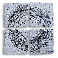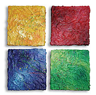 Artists have typically strolled down the aisles of art supply shops or the arts and crafts chain stores to stock up on materials and supplies for their creative endeavors. Their raw materials may consist of tubes of paint, sets of brushes and unadulterated canvases. Tad Smith, on the other hand, loads large carts with construction materials at the nearest Home Depot for his unique brand of artwork. He buys drywall and foam insulation boards for his substrate cores. Then, like a kid in a candy store, he seeks out every kind of goop, putty and construction gunk for his experimental texturing processes. “For some pieces, I use a wood putty for the texturing,” he says, “and then I paint them and occasionally add a two-part epoxy for the final gloss finish.”